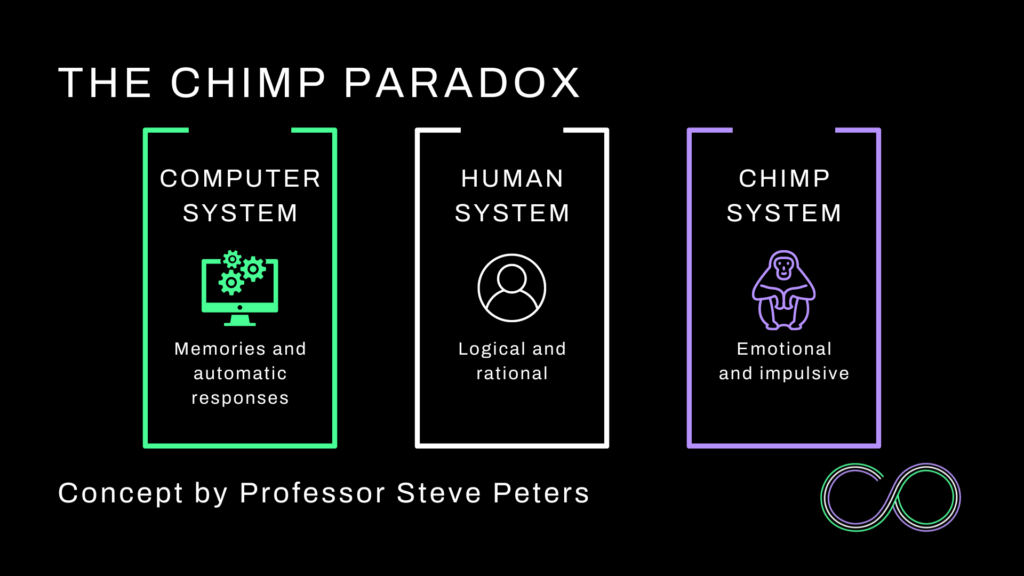 Professor Steve Peters’ Chimp Paradox model also highlights how a calming influence can massively assist in taming our inner ‘Chimp’ and achieving psychological wellbeing. This model posits that our brain consists of three main components: the Human (logical and rational), the Chimp (emotional and impulsive), and the Computer (storage of memories and automatic responses).
